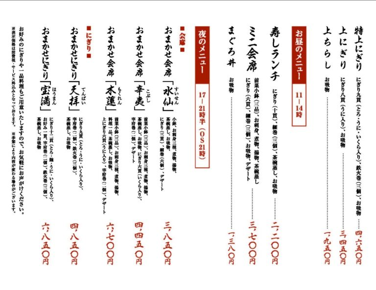 | 定休日 | ■2025年12月の定休日 1日、2日、10日、16日、17日、24日、30日(出前のみ)、31日(出前のみ) ■2026年1月の定休日 1日(出前のみ)、2日(出前のみ)、3日(出前のみ)、6日、14日、20日、21日、22日、28日 ■2026年2月の定休日 4日、5日、12日、17日、18日、24日 ■2026年3月の定休日 3日、4日、11日、18日、24日、31日 ■2026年4月の定休日 1日、8日、15日、22日、23日、30日 ■2026年5月の定休日 7日、12日、13日、20日、26日、27日 |