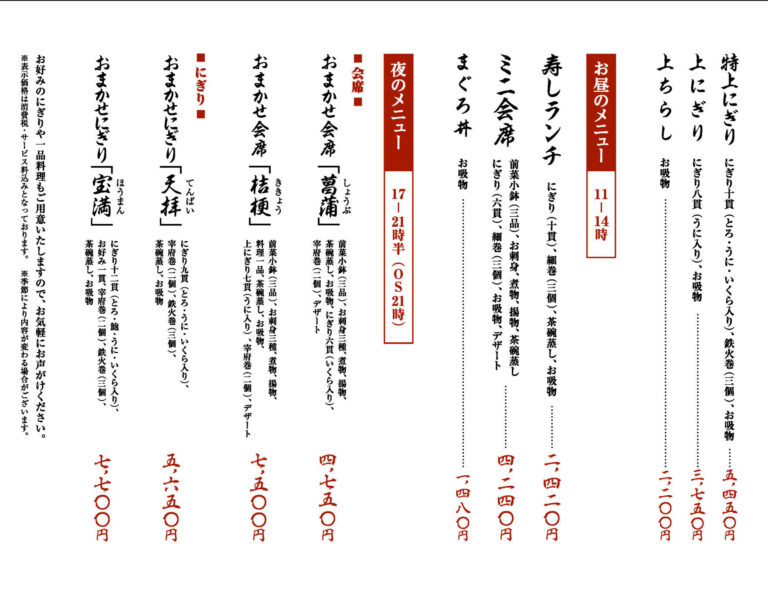 | 定休日 | ■2025年12月の定休日 1日、2日、10日、16日、17日、24日、30日(出前のみ)、31日(出前のみ) ■2026年1月の定休日 1日(出前のみ)、2日(出前のみ)、3日(出前のみ)、6日、14日、20日、21日、22日、28日 ■2026年2月の定休日 4日、5日、12日、17日、18日、24日 ■2026年3月の定休日 3日、4日、11日、18日、24日、31日 ■2026年4月の定休日 1日、8日、15日、22日、23日、30日 ■2026年5月の定休日 7日、12日、13日、20日、26日、27日 |